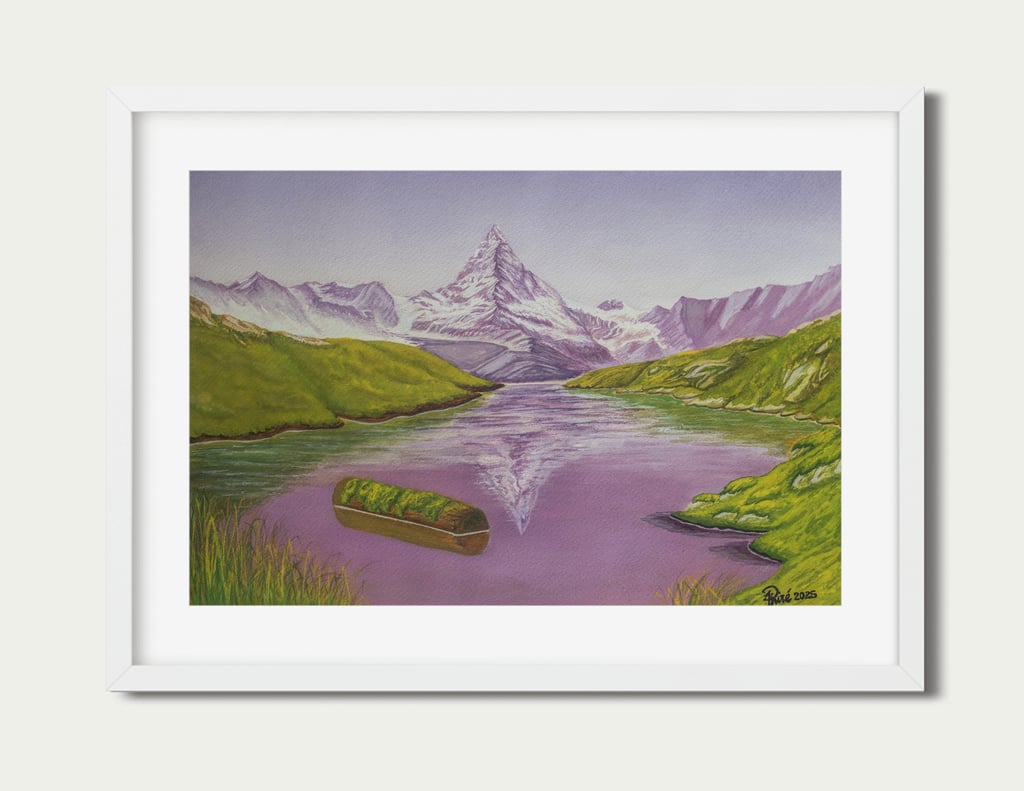 Original painting on archival materials, inspired by the enduring grandeur of the Matterhorn in the Swiss Alps.